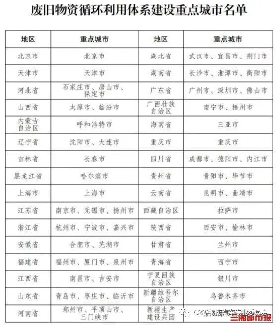 2月14日,国家发改委公布了《关于做好推进有效投资重要项目中废旧设备规范回收利用工作的通知》,《通知》鼓励北京、长沙、湘潭等60个废旧物资循环利用体系建设重点城市创新方式方法,强化相关基金和贷款项目供需对接。
