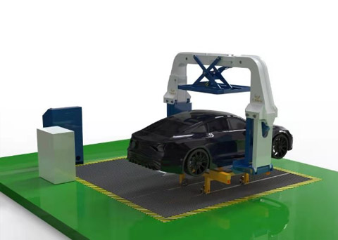 该翻转设备可以将操作车辆进行垂直90°翻转,从而可以使操作人员更加安全快捷的进行车辆底盘部件的拆解工作。同时配备三油缸同步夹紧装置配有压力传感器,可自适应车辆尺寸,可对不同车型进行自动夹紧,翻转操作,确保操作过程中对车辆的固定作用。可使用一键操作功能按键进行全自动操作,及三油缸自动夹紧车辆,然后主油缸进行车辆翻转操作,同时具备一键回落车辆功能,设备整体自动化程度高。并且配备全油缸点控控制按键进行适当微调。可以帮助操作人员自行设置成适当作业位置(角度)。同时设备兼容轨道式小车流水线运输,提升操作人员工作效率。设备拥有摄像头+雷达识别功能,可以识别作业区内是否有人员,如识别出有人员出现状况时设备将强制停止继续作业避免在设备运行过程中产生安全事故。此设备配有全操作区域防水槽,蓄水槽,防止车辆废液等有害液体渗透到地面造成污染,以及防止人员在作业过程中存在滑到的风险。同时可配装接油装置,将车辆渗透的油液进行收集,避免造成地面污染。同时此设备配装工具台,可方便操作人员进行高效操作。